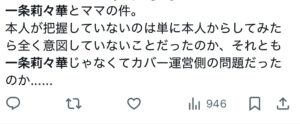 そのため一条莉々華さんの活動に含まれる際どい演出や、AI関連の誤解が引き金になった可能性が考えられます。